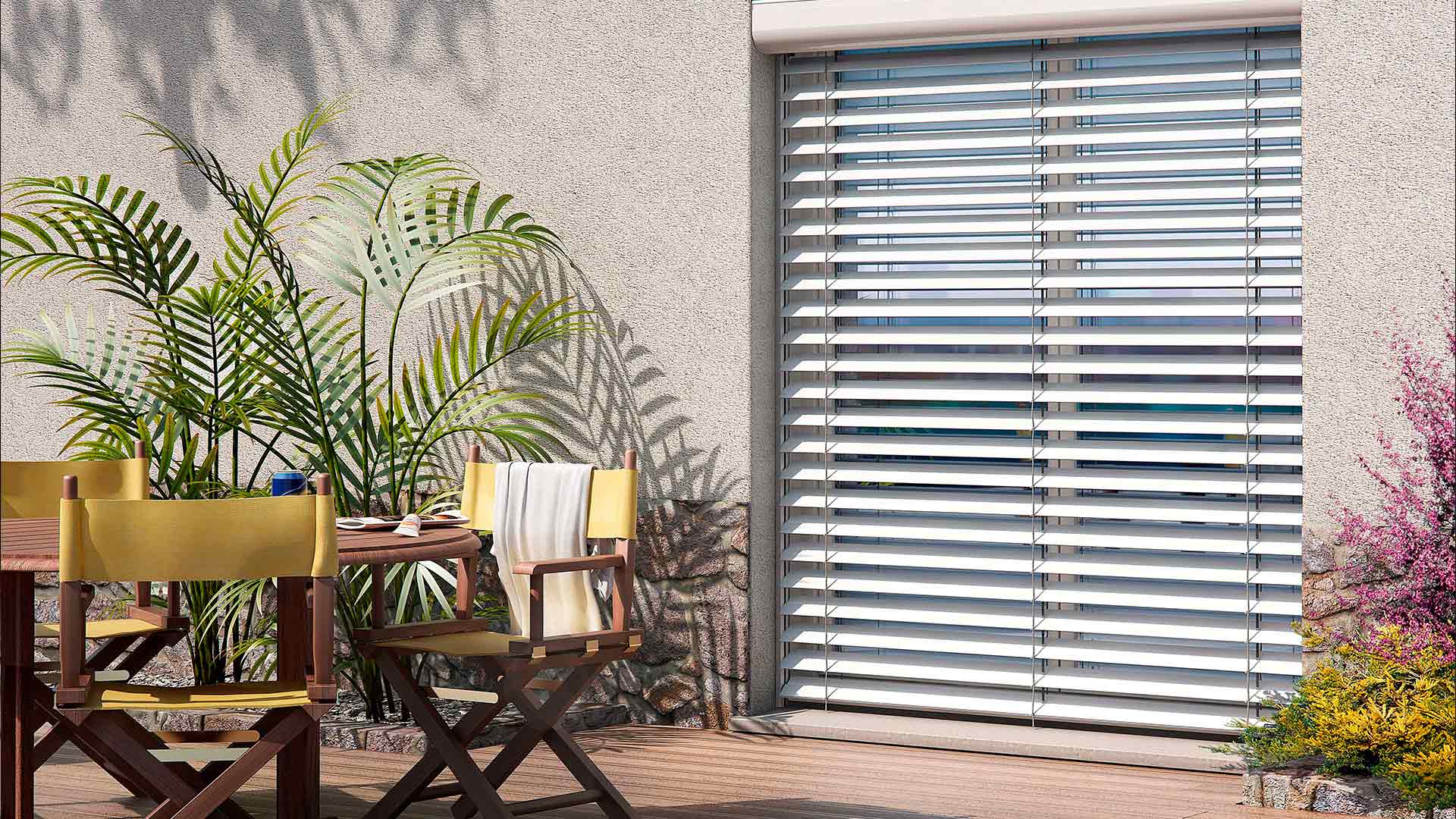 Protection des regards extérieurs sans occulter la vuegrâce aux lames orientables de 0 à 90°.